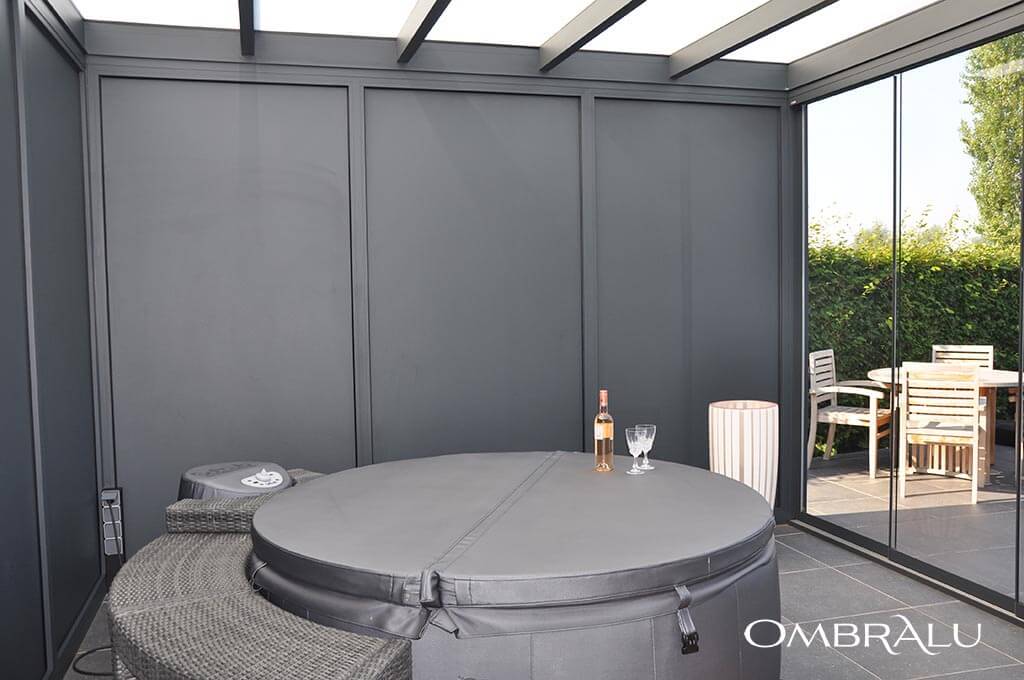 Elle peut également être fermée par des menuiseries traditionnelles ou par des parois vitrées en verre trempé sans châssis, effet garantie. Dans tous les cas, vos meubles d'extérieurs seront protégés toute l'année des intempéries.